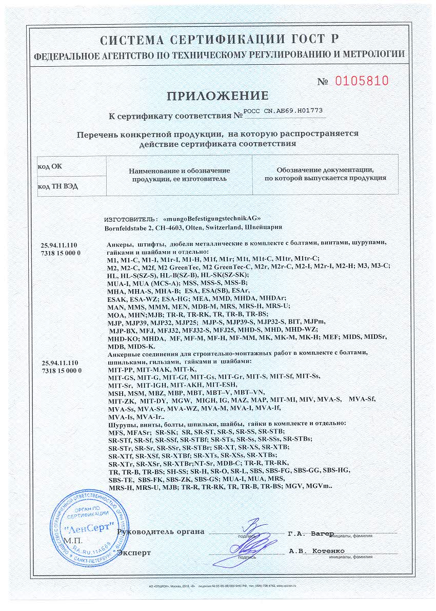 ETAG 020 - Сертифицирован для многоцелевого применения в бетоне и кирпичной кладке