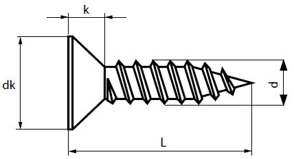 | d - диаметр самореза, мм | L - длина самореза, мм | dk - диаметр головки, мм | k - высота головки, мм |