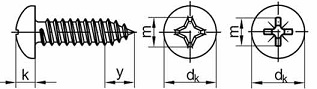 DIN 7981 - саморез с полукруглой головкой, с крестообразным шлицем PZ или PH, форма С - с заостренным концом, форма F - с тупым концом и с крестообразным шлицем Ph.