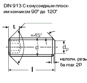 DIN 913 Винт установочный с плоским концом и внутренним шестигранником. Конец установочного винта имеет специальную форму, служащую для фиксации изделий относительно друг друга.