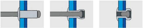 Основное применение заклепки вытяжной – неразъемное соединение тонких стальных листов и прочих листовых материалов. Также заклепка вытяжная используется для монтажа фасадных пластин, гофролистов и т.п. к различным конструкциям.