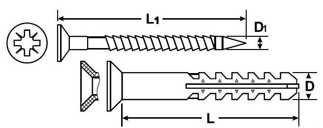 | Диаметр дюбеля | D, мм | 6 | 8 | 10 |