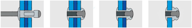 Основное применение заклепки вытяжной – неразъемное соединение тонких стальных листов и прочих листовых материалов. Также заклепка вытяжная используется для монтажа фасадных пластин, гофролистов и т.п. к различным конструкциям.